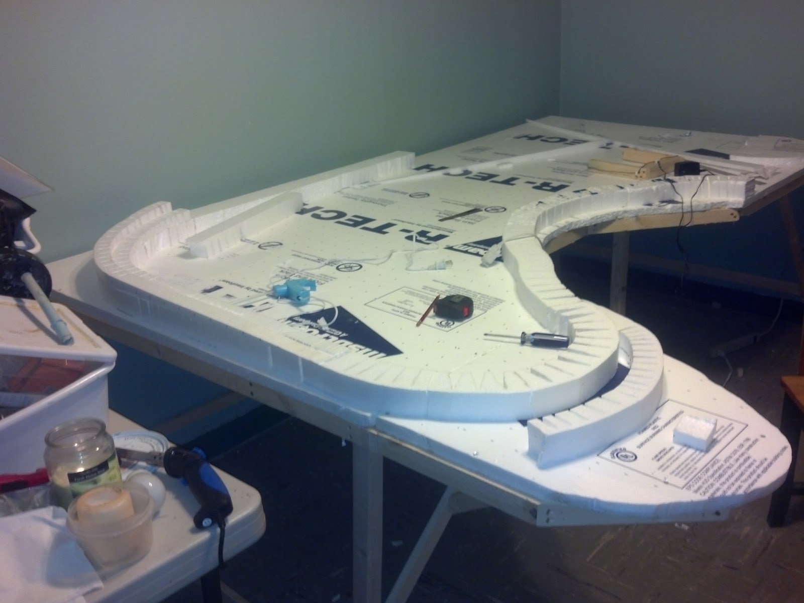 If you wonder about the cuts made into the foam, everything gets covered in a plaster cloth that you smooth out and it will make a nice flat surface.